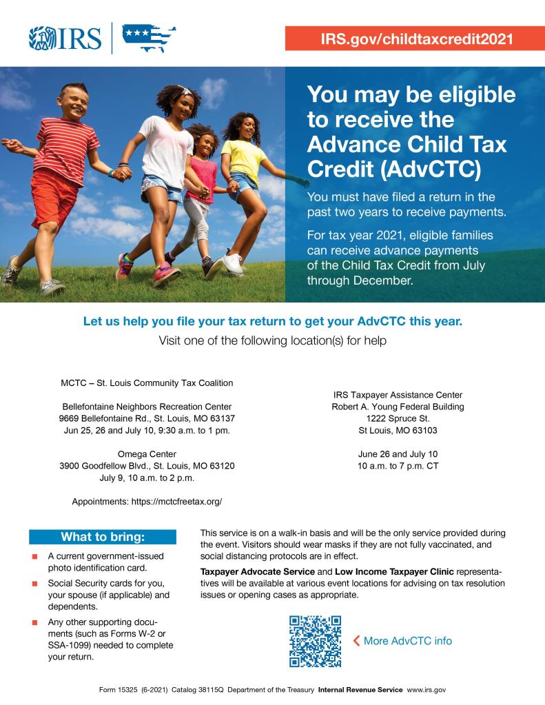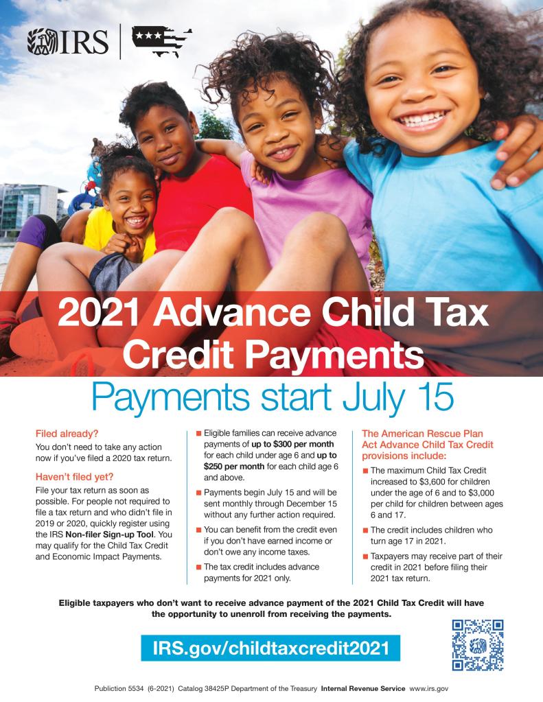 Child Tax Credit Payments are starting July 15th! You have to have filed your tax return in order to receive. See below resources for free tax prep! Call today to set up an appointment.