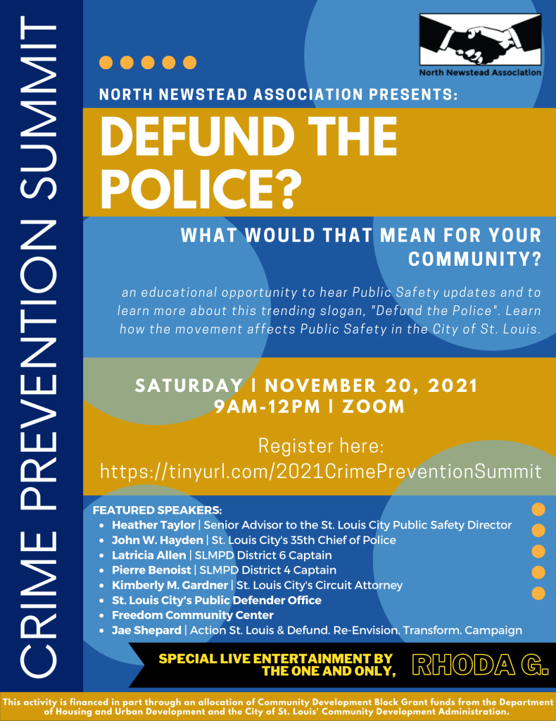 This is an an educational opportunity to hear Public Safety updates and to learn more about this trending slogan, “Defund the Police”. Learn how the movement affects Public Safety in the City of St. Louis.