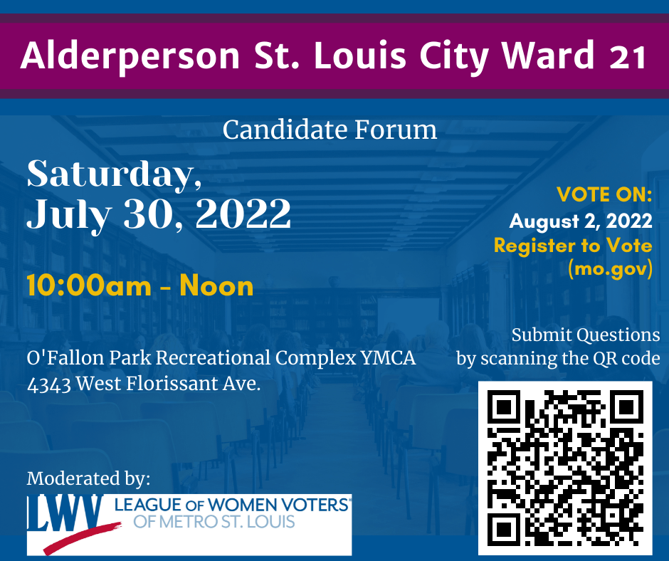 The forum will take place at the O’Fallon Park YMCA on July 30th from 10am-Noon. A Zoom link is listed below for those who aren’t able to attend in-person. All are welcome!
